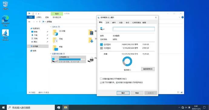 这个win10 LTSC 2021是精简版系统,可以16GB硬盘够用,如果开机之后再进行压缩一下的话可以到八九GB的样子